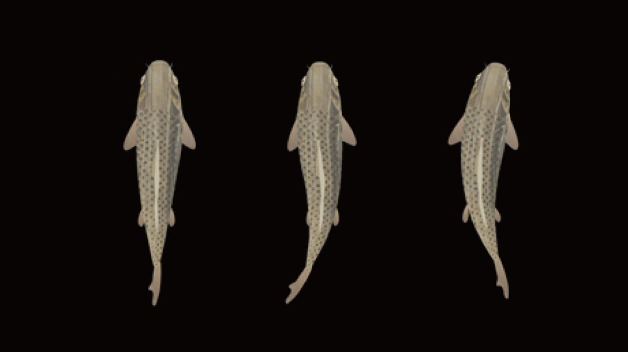 白い着物をデジタルで「化かす」——これが構成の出発点です。映像素材のモチーフには、山口美術織物が扱う伝統的な和柄——「稲穂」「孔雀」「登り鯉」「乱れ菊」などを選定し、モーショングラフィックスとして再構築しました。