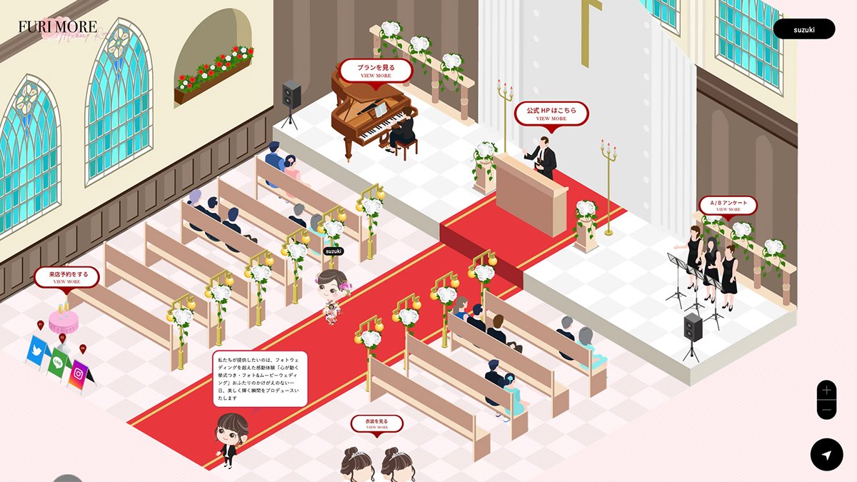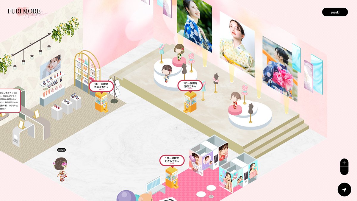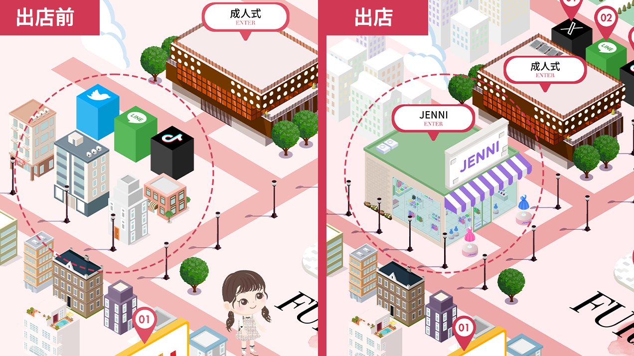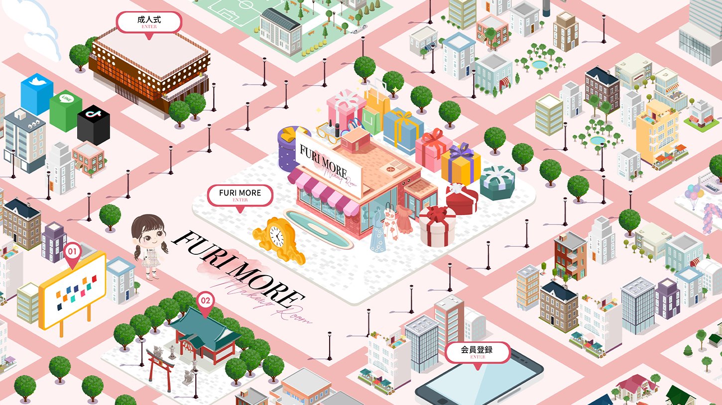 さらに、七五三、成人式、卒業式、結婚式とテーマ別にエリアを設計。情報を点で並べるのではなく、街全体で世界観を表現することで、単発のキャンペーン接触では得られないブランド理解を実装しました。回遊するほどに記憶に残る構造とすることで、認知で終わらない接点へと昇華しています。