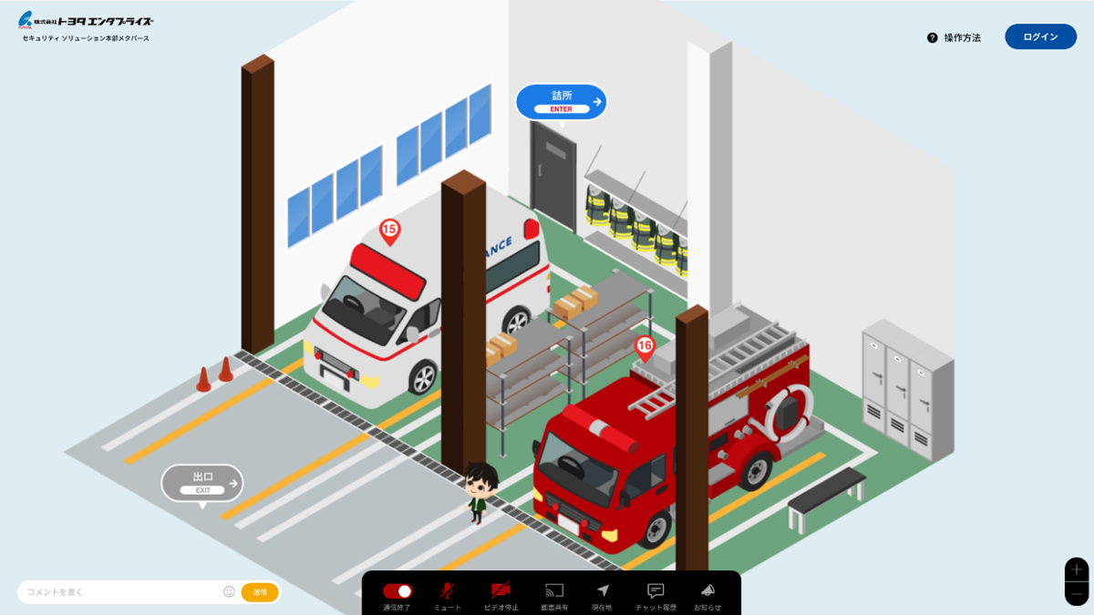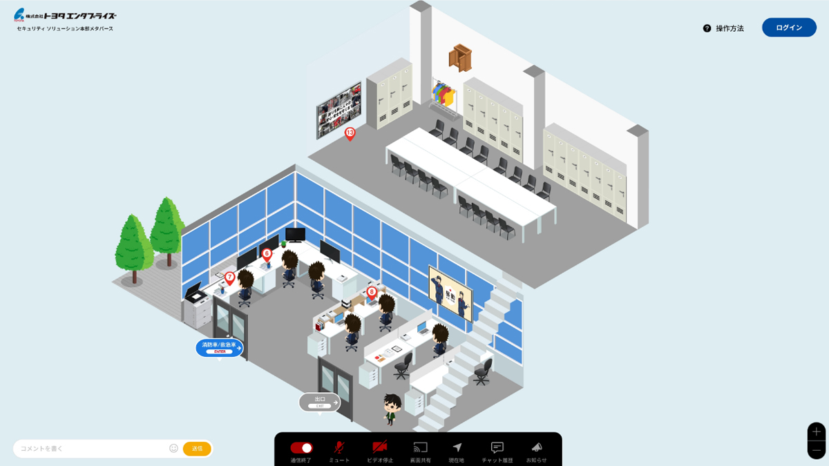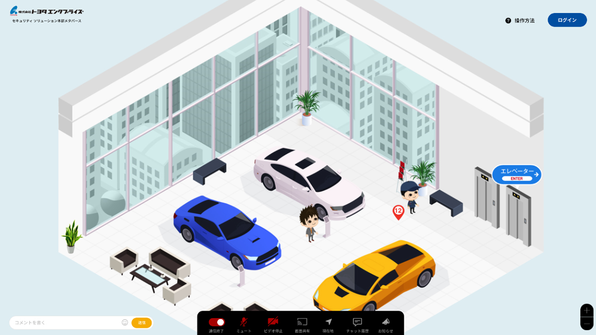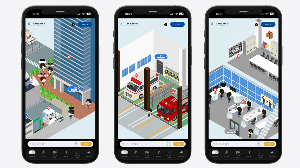 メタバース空間設計 / 2Dアイソメトリックデザイン / ビジュアル制作 / システム開発 / CMS構築・連携 / スマートフォン対応 / チャット機能実装