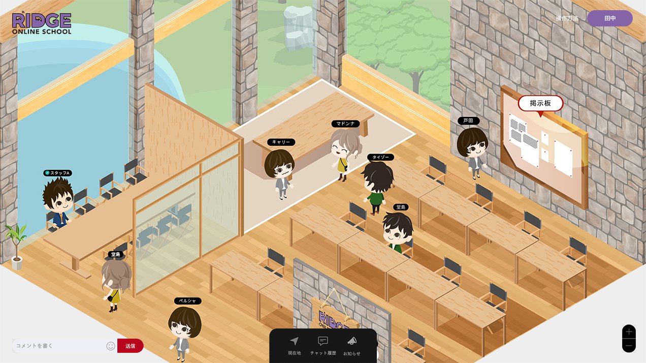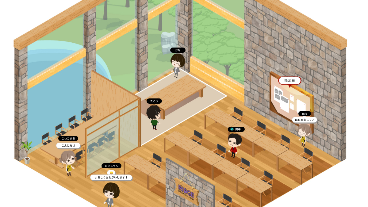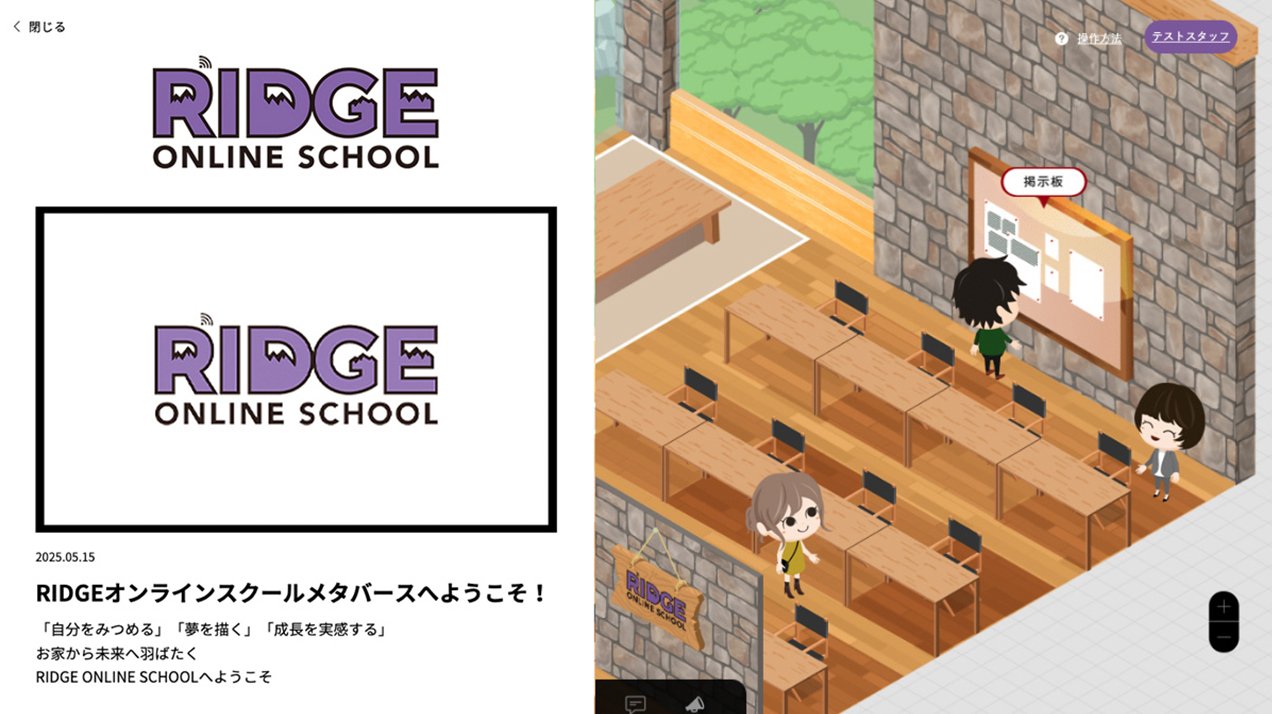 RIDGE ONLINE SCHOOLでは、メタバースを「授業を行う場」としてではなく、授業前後や合間に子どもたちが自然と集まれる“休み時間の教室”として設計しました。オンライン授業だけでは生まれにくい雑談や何気ない会話を受け止めることで、子ども同士の関係性が少しずつ育っていきます。