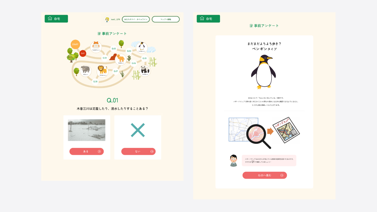 また、URLでアクセス可能で特別な機材が不要な構成は、学校教育に限らず、国土交通省の河川事務所や自治体と連携して実施している防災意識啓発やイベント支援の業務においても、有効なツールとして活用されています。