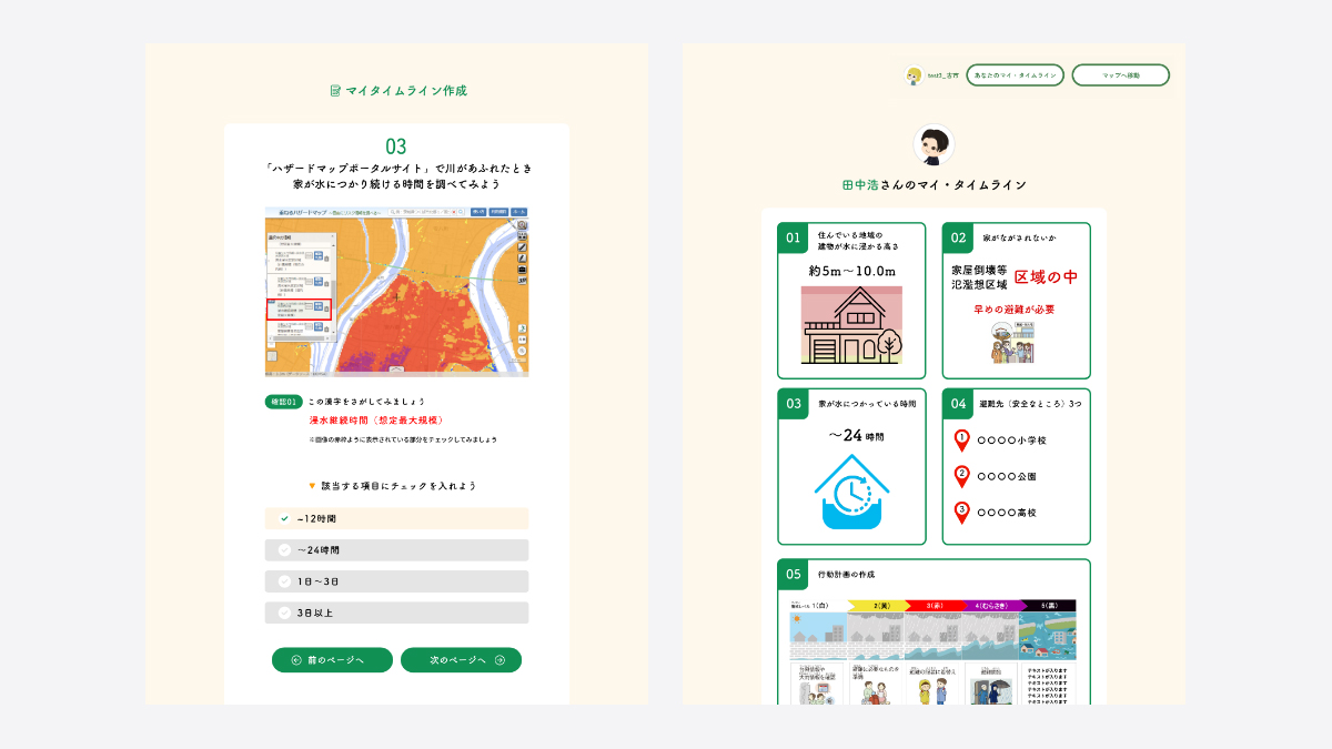 学習プロセスをデジタルで整理することで、短時間でも行動設計まで到達できる防災教育を実現しました。