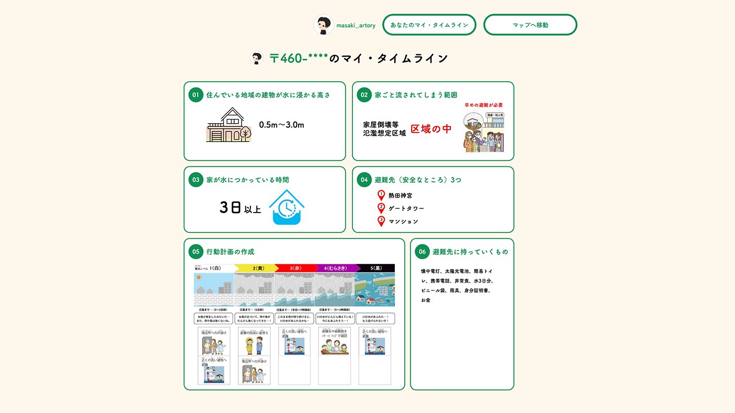メタバース空間企画・UX/UI設計 / 「防災アニマル診断」コンテンツ設計・実装 / バーチャルマップデザイン(地域再現型:ハザード・避難先・避難動線の可視化) / バーチャルマップ開発 / システム開発 / マイ・タイムライン作成機能実装 / マイ・タイムライン共有機能実装 / 教師向けダッシュボード構築(参加状況・学習進捗管理) / オリジナルアバター実装