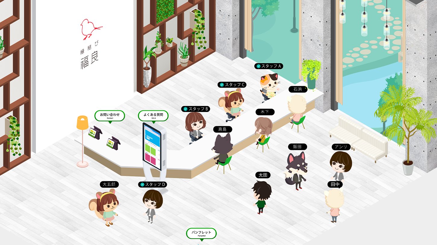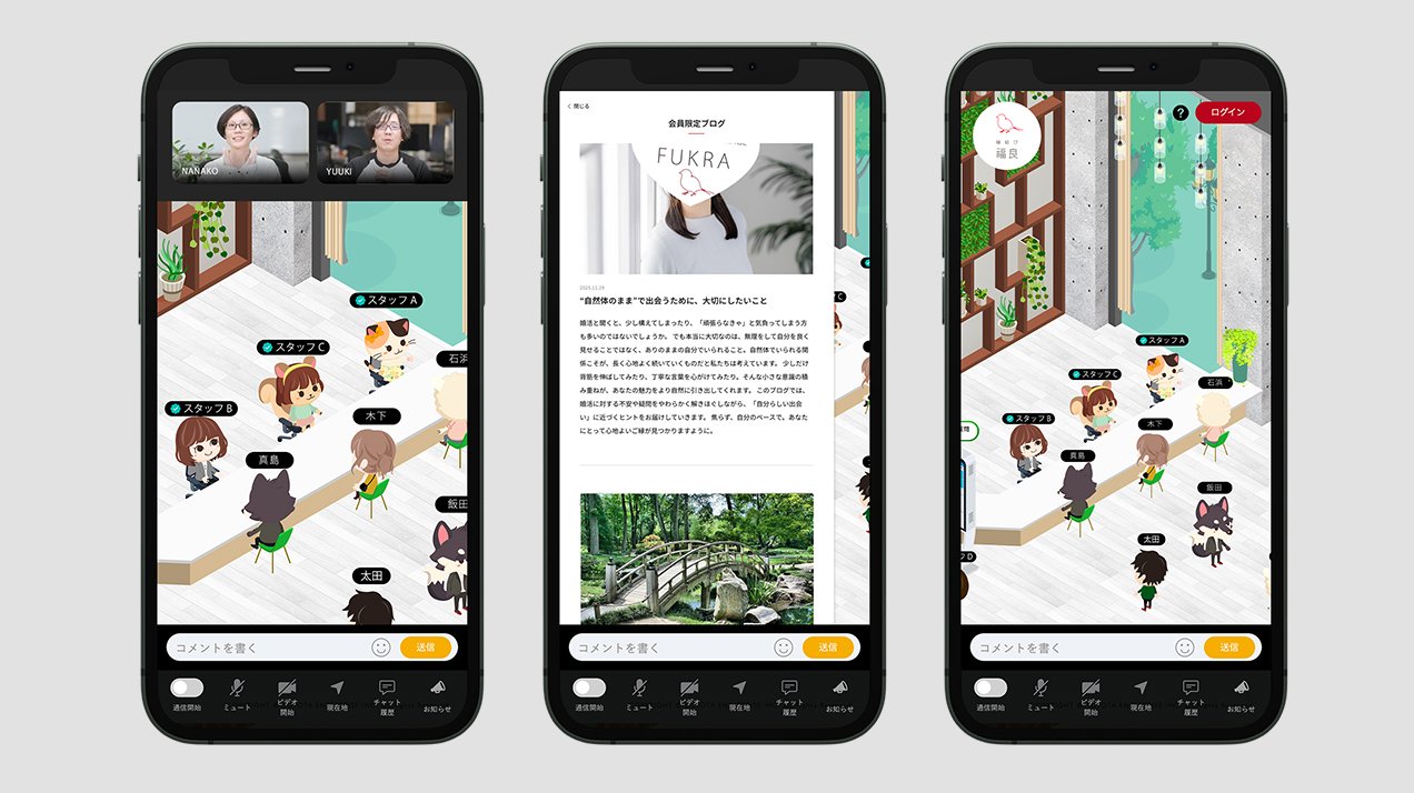 さらに、メタバース空間とホームページのブランドを統一。相談用の空間とイベント用の空間、それぞれの役割を整理しながら、縁結び福良というサービス全体の世界観に一貫性を持たせました。参加者がどの接点から入っても、同じ安心感を感じられる設計です。