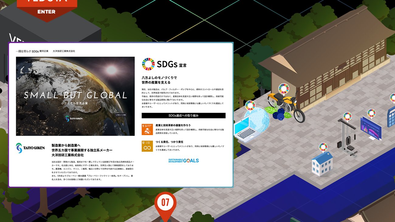メタバース企画・コンセプト設計 / アイソメトリックデザイン / メタバース開発 / ライブ配信連携 / 多言語対応 / SDGsコンテンツ設計