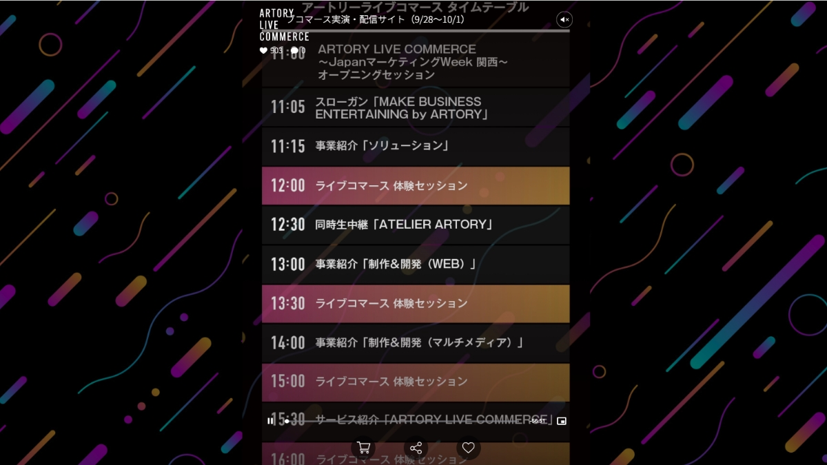 ARTORY LIVE COMMERCE~JapanマーケティングWeek【関西】~株式会社アートリー | | 0.5ヶ月