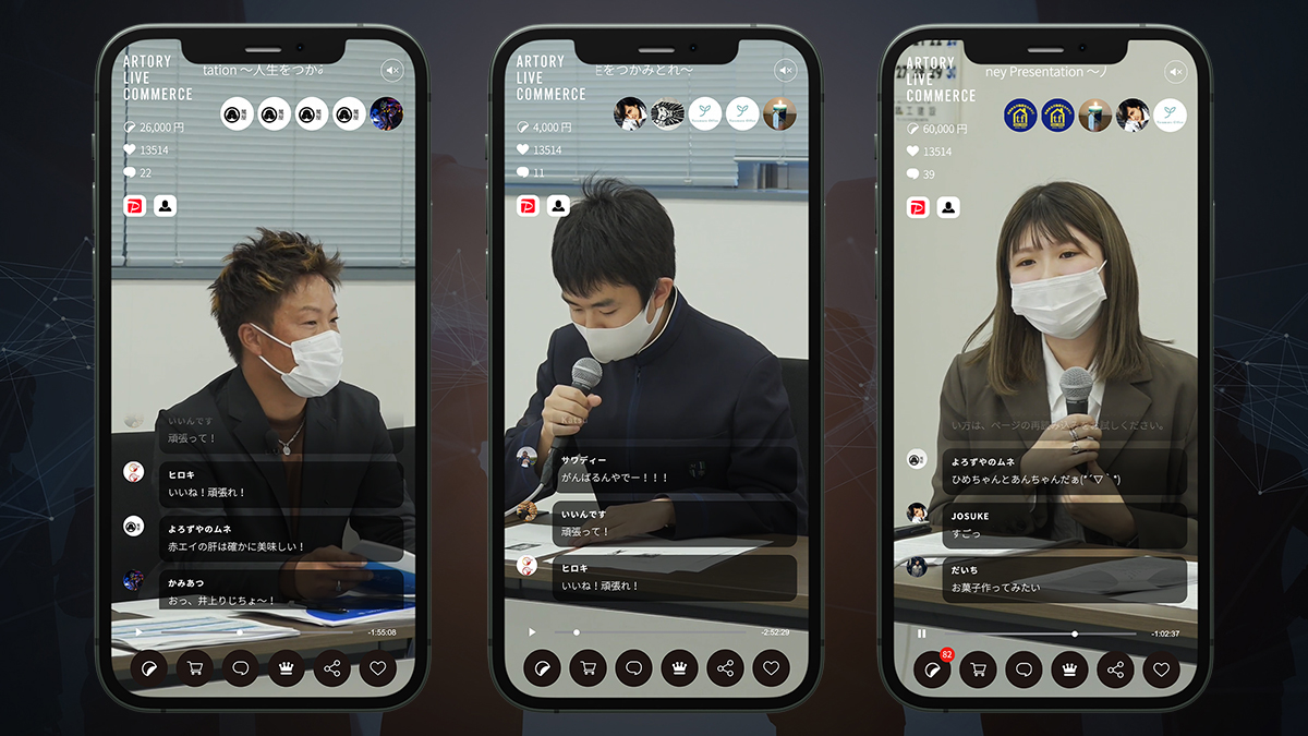 16歳から20歳までの青少年が、起業を想定して作成した事業計画書に基づきながらプレゼンテーションを実施する配信番組「make money presentation~人生をつかみ取れ~」。スポンサースタンプという投げ銭機能のプラットフォームを開発し、視聴者がスタンプをタップすると、500円の投げ銭が実行される仕組みを実装。プレゼンテーターと審査員だけでなく「リアルタイムで視聴者と繋がる」というライブコマースの強みを活用しました。