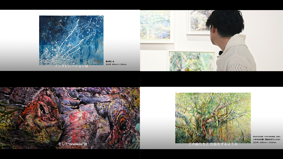 「第22回 奄美を描く美術展 大賞」や「第80回記念現展 SOMPO美術館賞」などを受賞し注目を集める水上氏。本映像では、その独自の表現手法と制作テーマである“oneness”に迫ります。